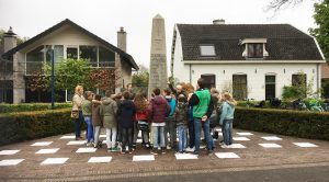 Vorige week woensdagochtend 3 mei – de dag voor dodenherdenking – brachten de twee schoolklassen van St. Joseph, samen met hun leerkracht, al een bezoek aan de gedenknaald. Daar kregen ze de verhalen te horen achter de 30 slachtoffers die met hun namen in de gedenknaald staan gebeiteld. De kinderen keken elkaar met afgrijzen aan bij het verhaal van Antonius Brouwer die zijn eigen graf moest graven voordat hij werd doodgeschoten. Een ander kind merkte op dat onder de slachtoffers ook kinderen waren van 14, 13, 10 en 8 jaar oud. Door elk jaar op deze manier kinderen bij de dodenherdenking te betrekken, wil het Oranjecomité Hoogland de herinnering aan (de gevolgen van) de Tweede Wereldoorlog door blijven geven aan de volgende generatie.