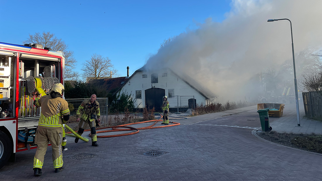 Een buurtbewoner heeft nog getracht het vuur te blussen. Hij verklaarde tegenover ons, dat het vuur aan de achterkant vrij laag in de rieten kap begonnen leek. Een andere buurtbewoonster had toen al de brandweer gewaarschuwd.