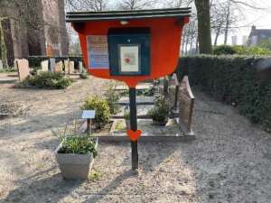 Sinds begin van dit jaar staat een speciale brievenbus direct ná het toegangshek op Begraafplaats Langenoord, met als opschrift ‘Post voor de hemel’. Via de brievenbus kun je ‘van hier naar daar’ een brief sturen aan iemand die je mist. Bea van de Hoef, Ans Kruisselbrink, Ad van Dijk en Jacqueline van Middelaar vormen de werkgroep ‘Ik mis je’ en zijn de initiatiefnemers. Eerder legden ze in ‘Hoogland Actueel’ het idee achter het initiatief uit: