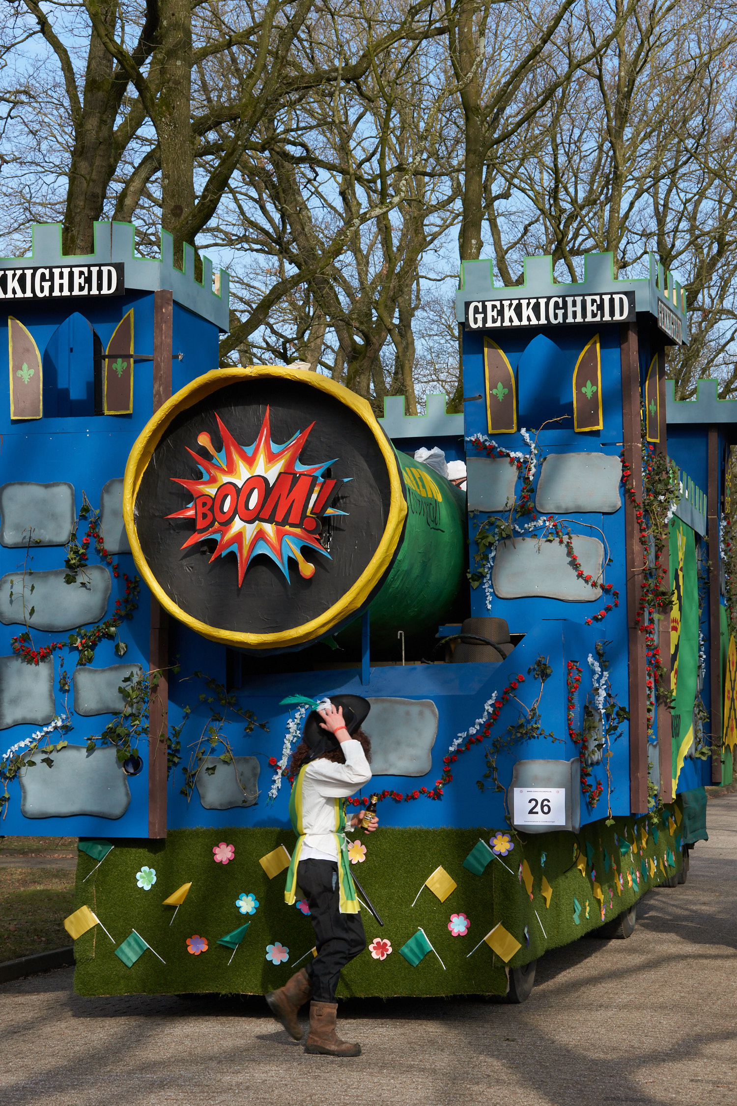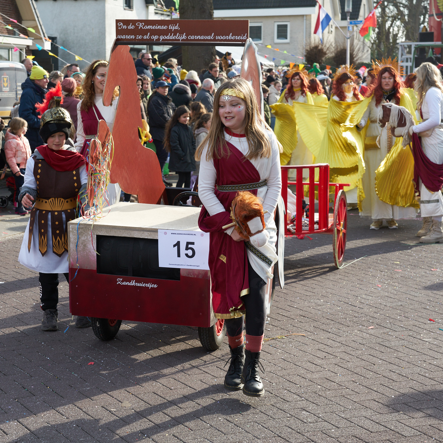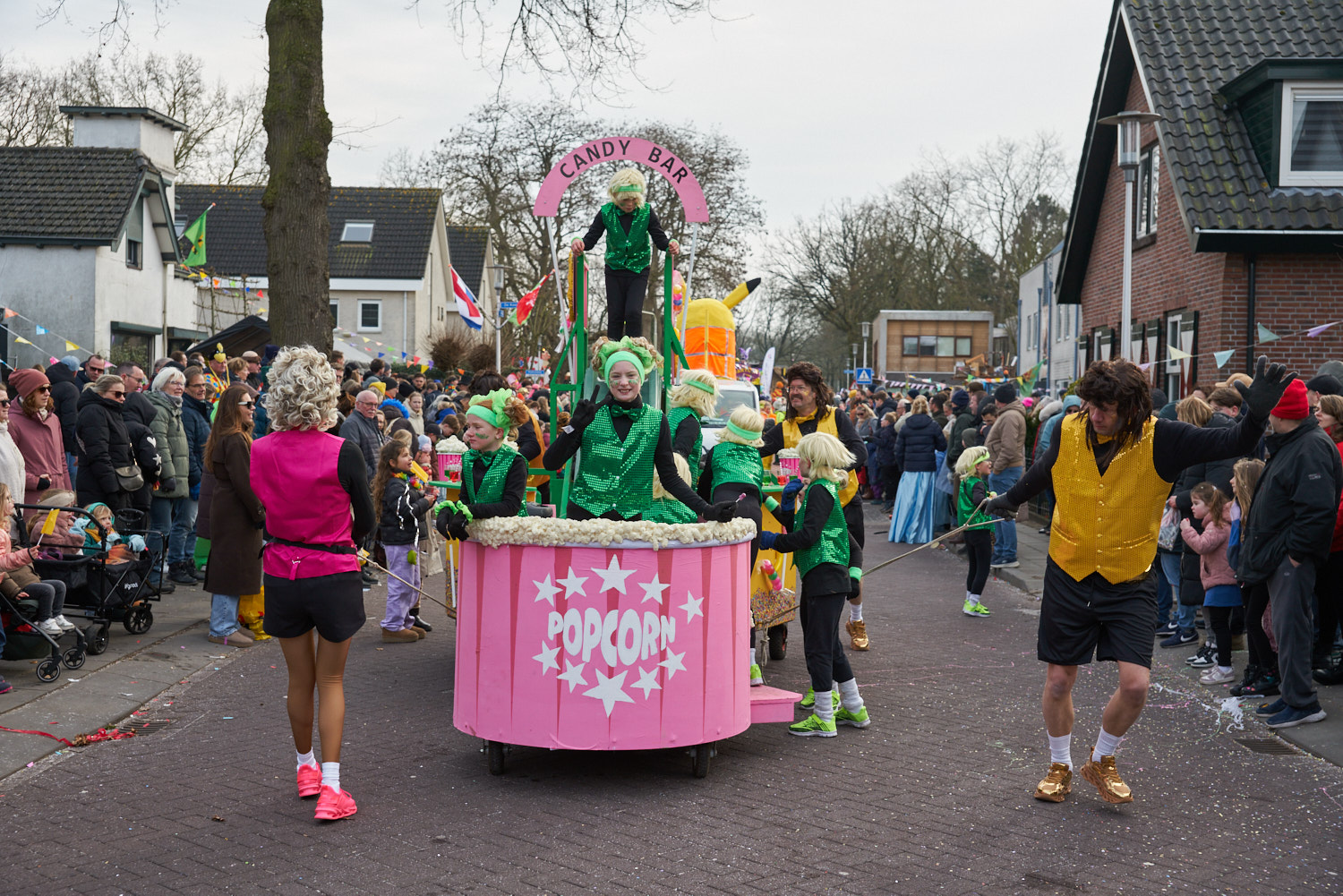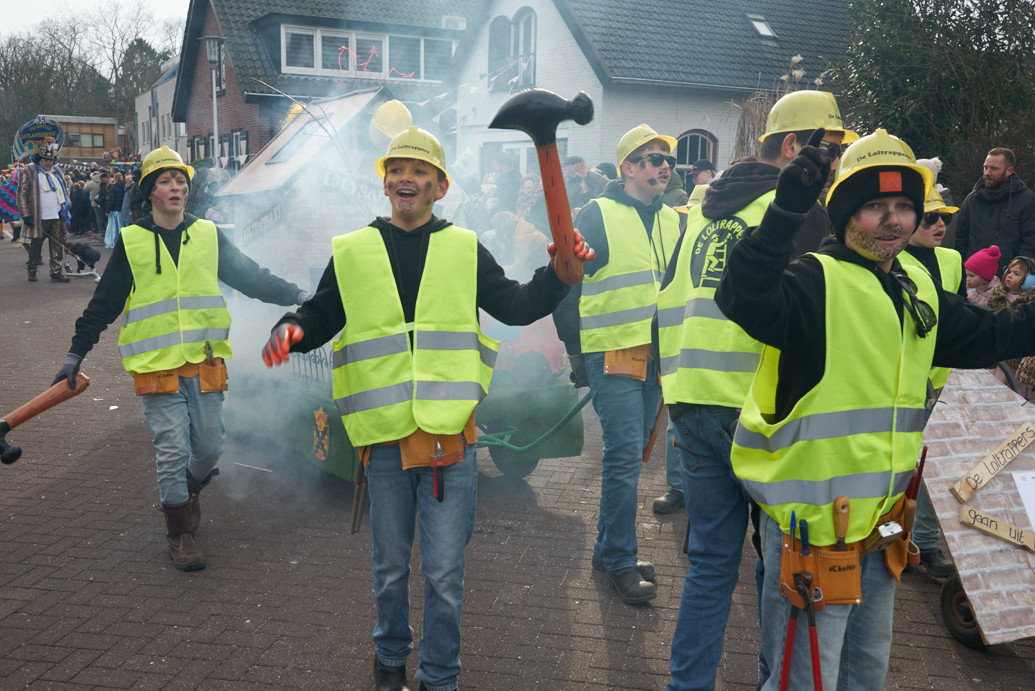 Er waren zeer grote praalwagens te bewonderen, net als kleine wagens, grote en kleine loopgroepen, een paar duo’s en één individu. Ook de winnaars van de Kinderoptocht van zaterdag liepen mee en deden voor ‘de groten’ niet onder.