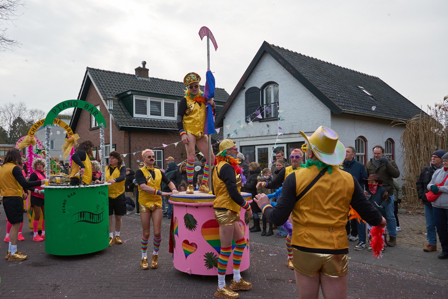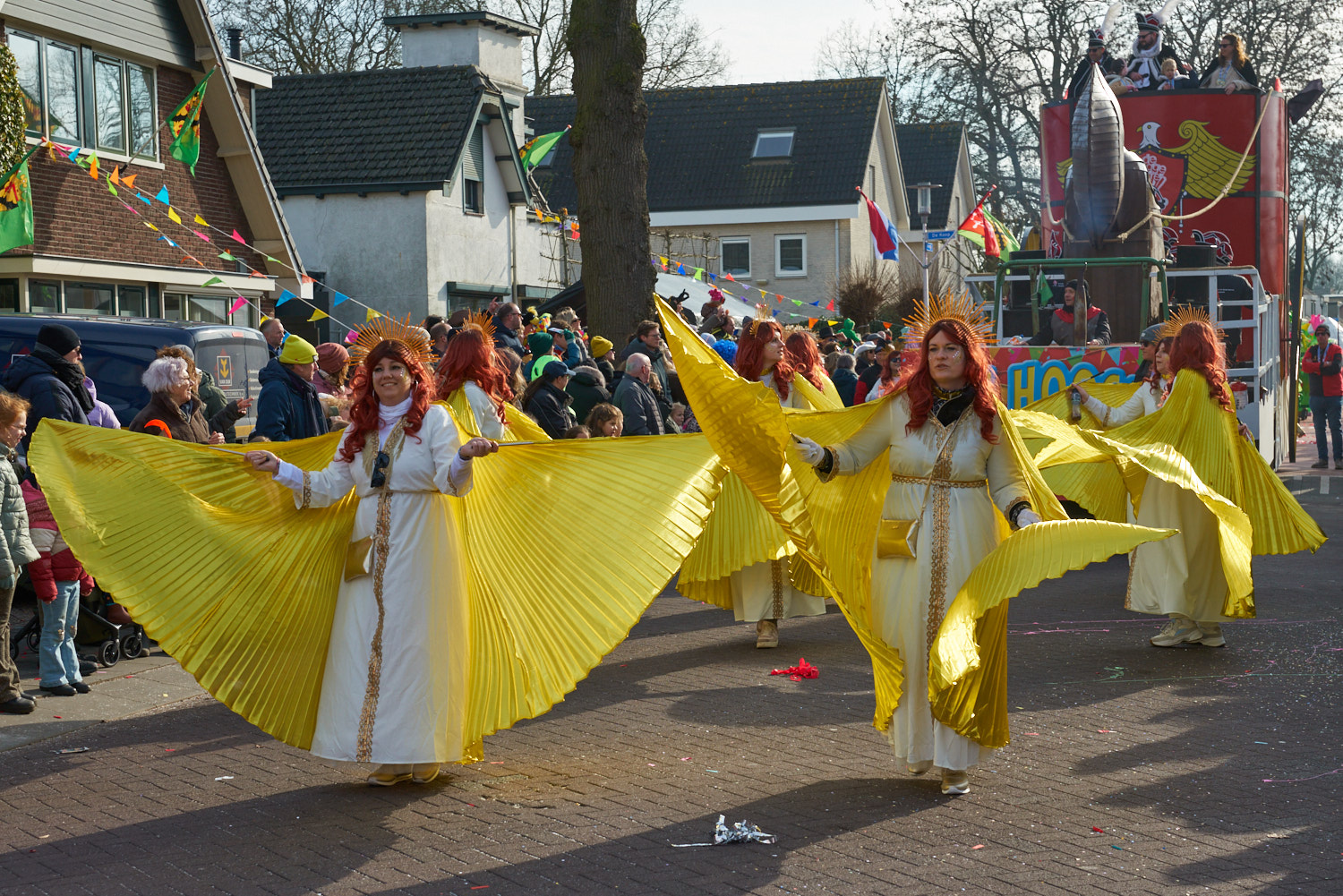 De toeschouwers konden zich innerlijke opwarmen aan een sfeervolle en kleurrijke optocht met 43 deelnemers uit Hoogland, Hooglanderveen, Achterveld, Soest, Nijkerk, IJsselstein en Amersfoort. De vrolijke omlijsting kwam van muziekvereniging Sint Caecilia uit Hoogland, de Turfstampers uit Hooglanderveen, de blaaskapel De Party Poepers uit Eemnes en Wierings Trompetter Korps uit Amsterdam.